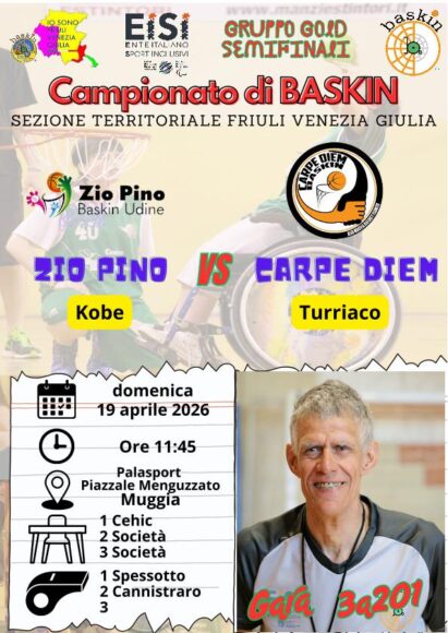 Zio Pino Baskin Udine ASD si trova presso Bearzi Stadium. 𝗟𝗔 𝗖𝗔𝗜𝗡𝗘𝗥𝗢 𝗜ERI 𝗜𝗡 𝗖𝗔𝗦𝗔 Ieri sera in campo al Bearzi per l’andata della semifinale 13°-16° posto del girone Silver. E’ stata una nuova sfida, un nuovo capitolo da giocare insieme, con