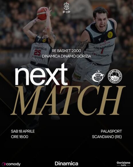 Ritorno sul parquet. Dopo due settimane riecco la Dinamica Dinamo Gorizia in pista e in viaggio lungo la via Emilia per rendere visita oggi, sabato 18 aprile, alle 19 a Scandiano alla Reggio Emilia Basket 2000. Per coach Tomasi e