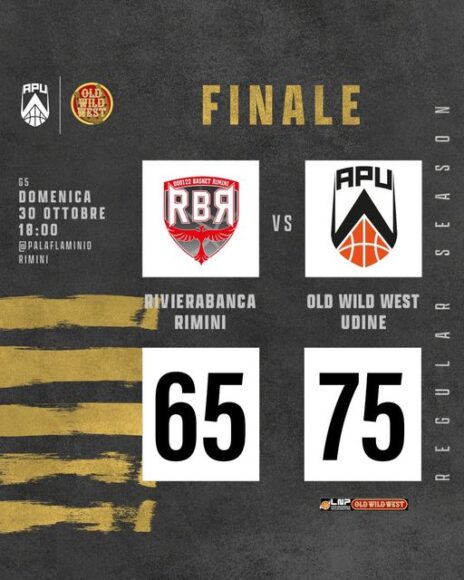 L’Old Wild West Apu Udine riparte a Rimini dopo il primo stop stagionale, dovuto anche al Covid, contro la Tramec Cento. La matricola terribile, almeno in casa, Gesteco Ueb Cividale fa la sorpresa nell’anticipo contro la nobile decaduta Fortitudo Bologna,