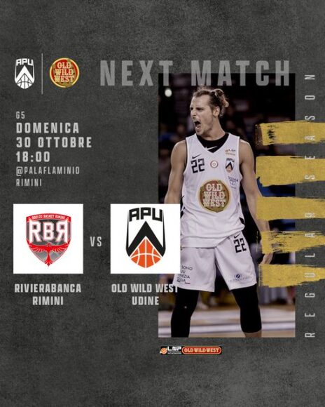 Recuperati pienamente i giocatori risultati positivi al Covid 19, e quindi assenti contro la Tramec Cento, l’Old Wild West Apu Udine si trasferisce nella riviera romagnola per fare visita alla neopromossa RivieraBanca Rimini oggi al palaFlaminio, con palla a due
