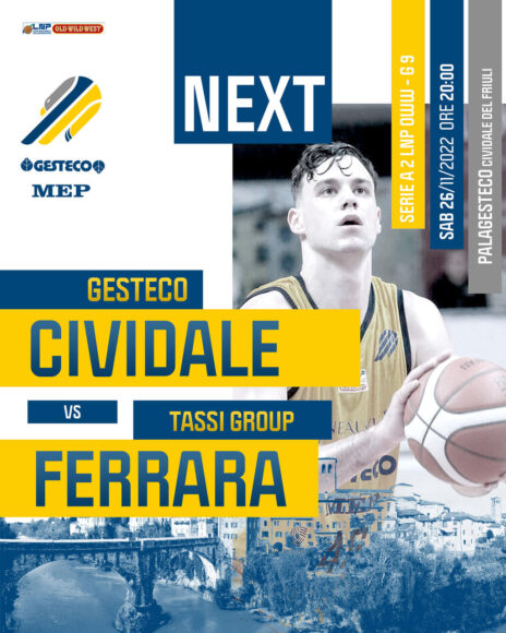 Archiviata la prima, storica vittoria fuori casa della società in serie A2, la Gesteco Ueb Cividale riceve oggi, alle ore 20, la Tassi Group Ferrara per la nona di andata del girone Rosso. Arbitreranno Gianluca Gagliardi di Anagni (Frosinone), Andrea
