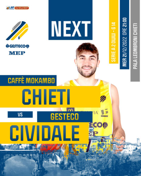 Partita delicatissima la prima di ritorno per la Gesteco Ueb Cividale in trasferta in casa del Caffè Mokambo Chieti, oggi alle ore 21 con arbitri Duccio Maschio di Firenze, Gian Lorenzo Miniati di Firenze e Daniele Calella di Bologna; diretta streaming