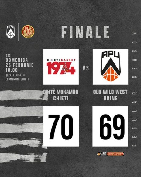 SERIE B OLD WILD WEST GIRONE B 2022 – 2023 Nella sesta di ritorno di serie B, girone B la Pontoni Falconstar Monfalcone si prende la scena a Palermo ospite del fanalino di coda Green Basket 99. Sul parquet della cenerentola la squadra di coach Matteo Praticò