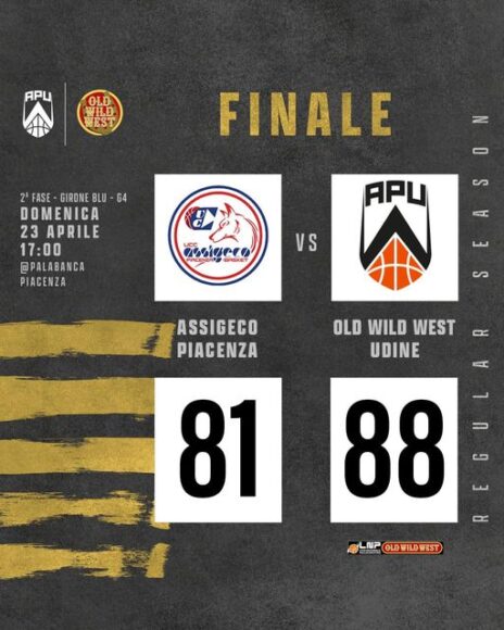 Trasferta delicatissima per l’Old Wild West Apu Udine quella in programma oggi, domenica 23 aprile, alle ore 17 contro l’Assigeco Ucc Piacenza valida per la prima di ritorno del girone Blu di serie A2 femminile. Solo un risultato positivo in terra