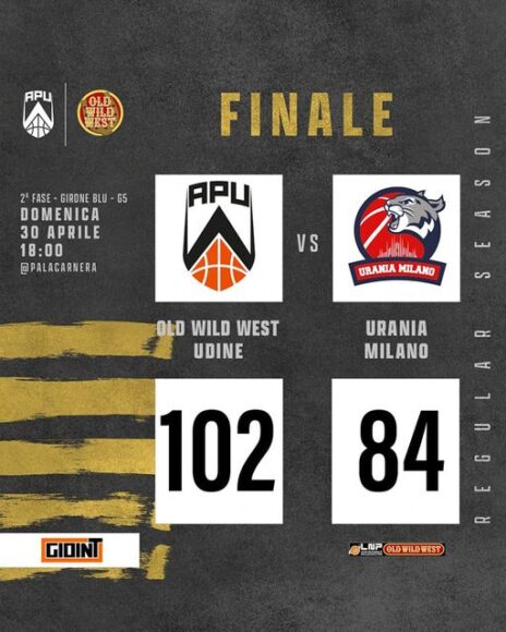 Negli anticipi al sabato dei campionati di lega arrivano due sconfitte su altrettante gare per il basket Fvg, nei posticipi domenicali invece tre vittorie su tre partite per le squadre regionali. Buona domenica. SERIE A – Girone unico Lba Dopo il ko