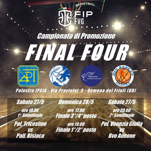 Oggi, domenica 28 maggio, alle ore 19 Tricesimo – Venezia Giulia Basket Muggia è la finale primo – secondo posto della Final four del campionato di Promozione, che è in corso alla palestra Ipsia di via Praviolai 5 a Gemona. Sarà