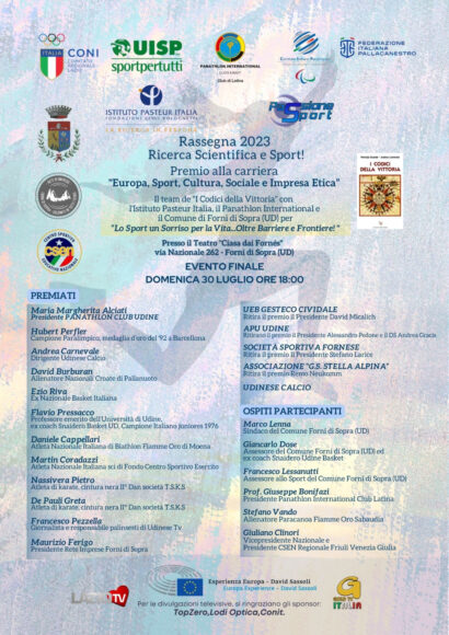 Domani, domenica 30 luglio, al teatro “Ciasa dai Fornes” di Forni di Sopra alle ore 18 andrà in scena il sesto appuntamento della rassegna “Lo Sport un Sorriso per la Vita… Oltre Barriere e Frontiere” con l’assegnazione del premio alla