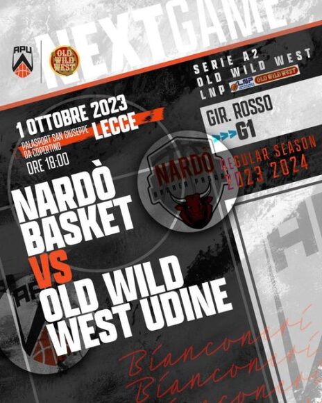 Per la prima di campionato di serie A2 girone Rosso l’Old Wild West Apu Udine deve affrontare la trasferta più lunga del torneo, andando a Lecce per giocare contro la Next Nardò oggi, domenica 1 ottobre, alle ore 18 arbitri