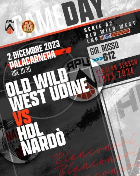 Partita molto insidiosa la prima di ritorno di serie A2, girone Rosso per l’Old Wild West Apu Udine contro la Hdl Nardò oggi, sabato 2 dicembre, alle ore 20.30 al palasport Carnera, arbitri Puccini, Marzulli e Bartolini. Difatti la squadra