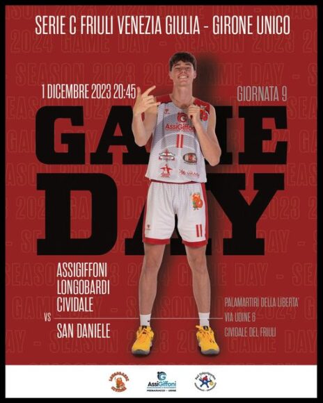 Nona di andata in serie C unica regionale. Si comincia questa sera, venerdì 1 dicembre, alle ore 20.45 con il derby udinese fra AssiGiffoni Longobardi Cividale e Fly Solartech San Daniele alla palestra ducale Martiri della Libertà, arbitri Fulvio Caroli