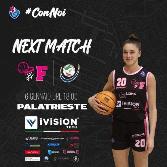 Nella tredicesima e ultima uscita del girone d’andata della serie A2 femminile, girone B l’Ivision Tech Futurosa Trieste ospita l’Umbertide al palaRubini a partire dalle ore 19 di oggi, sabato 6 gennaio. A dirigere il match saranno Gianmaria Bortolotto di