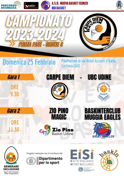 Il campionato regionale Fvg di baskin 2023-2024 chiude oggi, domenica 25 febbraio, anche il girone C con la quinta e ultima giornata di ritorno. L’Interclub Muggia Eagles ha già vinto con una giornata di anticipo la corsa a tre per il primo