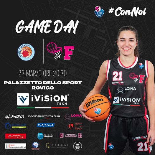 I.Vision Tech Futurosa Trieste in missione oggi, sabato 23 marzo, alle ore 20.30 in casa del Solmec Rovigo nel venetsimo turno, decimo di ritorno, della serie A2 femminile girone B. All’andata le giuliane vinsero per 76-54. Stavolta la coppia arbitrale
