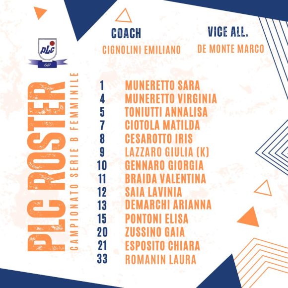 ROSTER SERIE B FEMMINILE 2024-2025 <Domenica finalmente si parte! Ecco (nella foto di copertina) il roster completo della nostra prima squadra femminile Ragazze e staff sono carichi per questa nuova stagione, e voi? FORZA PLC> Campionato: Serie B femminile Fase :