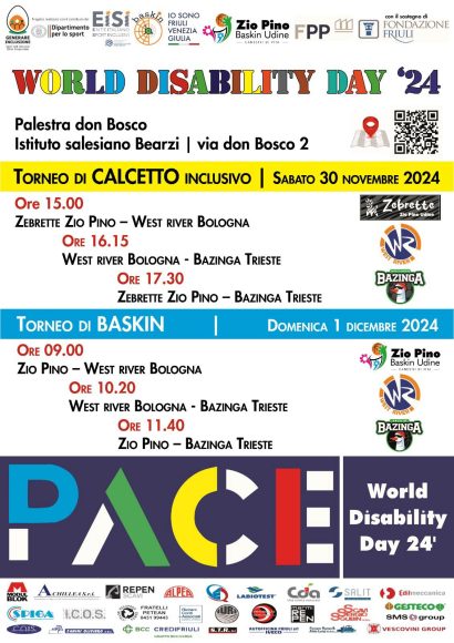 Zio Pino Baskin Udine ASD si trova presso Istituto Salesiano G. Bearzi. 𝗩𝗜𝗩𝗜 𝗟𝗔 𝗠𝗔𝗚𝗜𝗔 𝗗𝗜 𝗨𝗡 𝗪𝗘𝗘𝗞𝗘𝗡𝗗 𝗗𝗜 𝗦𝗣𝗢𝗥𝗧 𝗜𝗡𝗖𝗟𝗨𝗦𝗜𝗩𝗢! 𝗔𝗽𝗽𝘂𝗻𝘁𝗮𝗺𝗲𝗻𝘁𝗼 𝗨𝗡𝗜𝗖𝗢 per celebrare il World Disability Day 2024: il tuo weekend sarà diverso da ogni altro! 𝗦𝗮𝗯𝗮𝘁𝗼 𝟯𝟬 𝗡𝗼𝘃𝗲𝗺𝗯𝗿𝗲: scendi