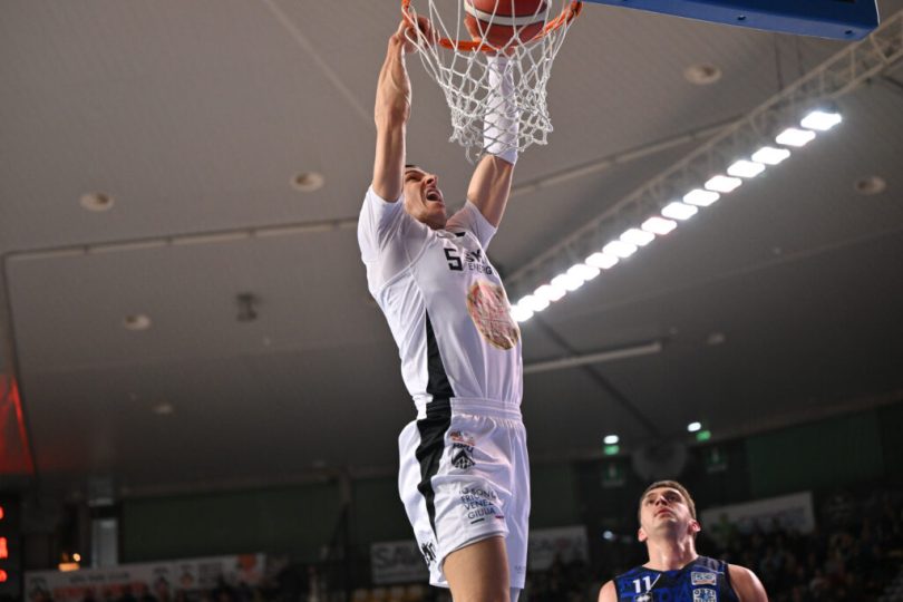 Eugenio Rota strepitoso nell’ultimo quarto (14 punti e 30 di valutazione totale) regala alla Ueb Gesteco Cividale la vittoria che stoppa la striscia negativa di 4 sconfitte consecutive. Con Marangon in panchina, ma ancora non utilizzabile per via della storta