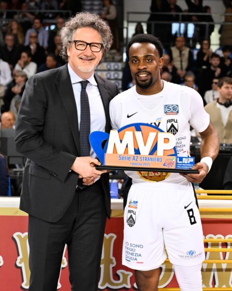 Lega Nazionale Pallacanestro è con Apu Udine. Complimenti ad 𝐀𝐧𝐭𝐡𝐨𝐧𝐲 𝐇𝐢𝐜𝐤𝐞𝐲 che si è aggiudicato il premio di 𝐌𝐕𝐏 𝐒𝐭𝐫𝐚𝐧𝐢𝐞𝐫𝐨 del mese di 𝐟𝐞𝐛𝐛𝐫𝐚𝐢𝐨 in 𝐒𝐞𝐫𝐢𝐞 𝐀𝟐 𝐎𝐥𝐝 𝐖𝐢𝐥𝐝 𝐖𝐞𝐬𝐭 Consegna il riconoscimento al giocatore di Apu Udine il presidente