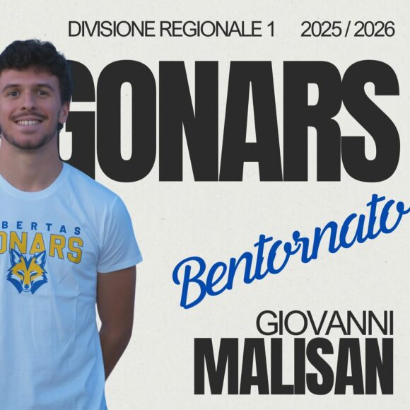 Bentornato ๐๐ฐ๐๐ฝ๐ผ๐ต๐๐ฐ ๐ด๐ผ๐ณ๐๐บ๐ผ๐ต Dopo le esperienze in serie C con Ubc Udine e Cornodi Rosazzo, siamo contenti di annunciare il ritorno di Giovanni in maglia Gonars. ***** Fatto un poker di conferme conย Leo Malisanย dopo quelle diย Federico Vermi,ย Gabriele Fontanotย e della prima