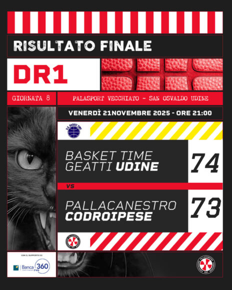 CBA – Codroipo Basket Academy Ottava di andata del campionato DR1 girone B venerdรฌ 21 novembre scorso a Udine fra Basket Time e Cba. Squadre entrambe affamate di risultato e alle quali il percorso di campionato fin qui disputato ha