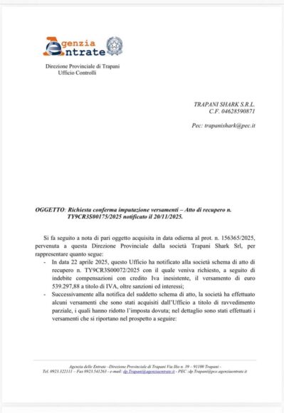 In un video pubblicato sulla propria pagina Facebook, Valerio Antonini con toni molto concitati ha rimandato al mittente i comunicati di oggi di Fip e Lega, pubblicando anche documenti della Agenzia delle Entrate. <È una persecuzione verso il Trapani Calcio e la Trapani Shark