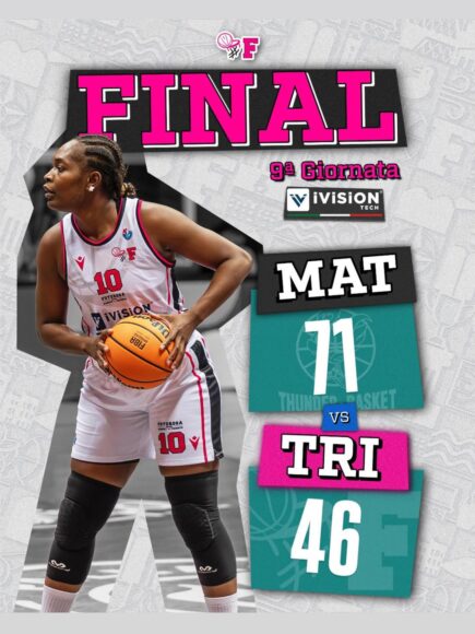 MATELICA-FUTUROSA TRIESTE 71-46 (18-12, 35-21, 53-31) HALLEY THUNDER MATELICA: Trzeciak 8, Cabrini 2, Bacchini 9, Chiovato 5, Battellini, Gramaccioni 7, Zamparini 2, Lo Russo, Bonvecchio 9, Lizzi 8, Offor 11, Pilakouta 10. All.: Matassini FUTUROSA I-VISION TRIESTE: Maza 14, Donato