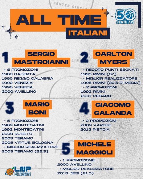 – Giocatori con il maggior numero di promozioni dall’A2 al campionato superiore;
