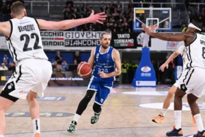 I biancoblu sono stati trascinati dai 25 punti, 5 assist e 6 falli subiti (25 di valutazione) del decisivo Della Valle, oltre che dai 23 punti, 6 falli subiti e 10 rimbalzi di Bilan (32 di valutazione) e i 10 punti a testa di Burnell e Cournooh. Ai bianconeri non sono bastati i 20 punti (8/10 al tiro) e 4 rimbalzi di Alibegovic, i 17 punti e 4 rimbalzi di Bendzius, i 13 punti, 4 rimbalzi e 5 assist di Christon e i 12 punti e 7 rimbalzi di Mekowulu.