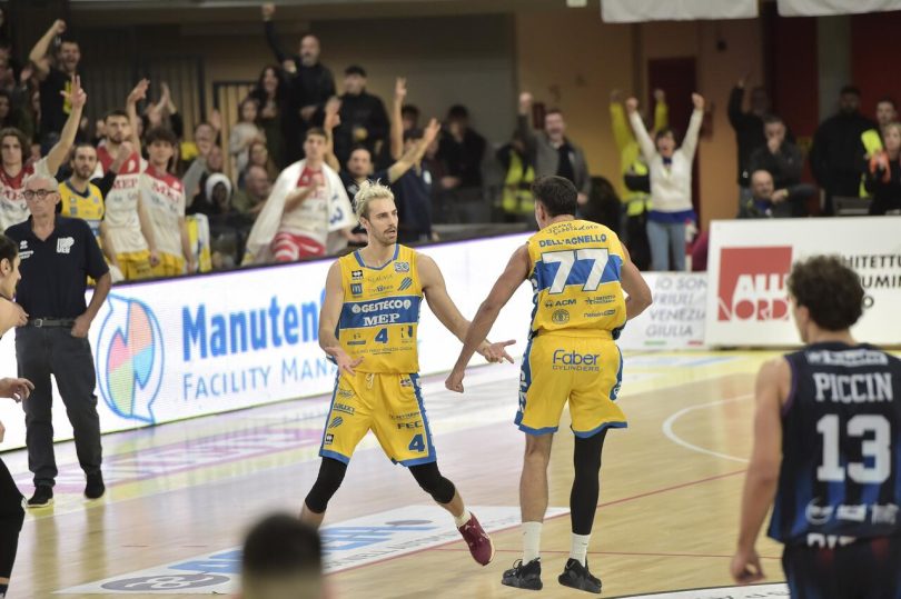 UEB GESTECO CIVIDALE: Lucio Redivo 21 (5/8, 3/10), Gabriele Miani 13 (5/7, 1/3), Derrick Marks 12 (2/5, 2/5), Eugenio Rota 11 (2/3, 1/4), Giacomo Dell’Agnello 10 (3/7, 1/1), Martino Mastellari 7 (2/5, 0/2), Leonardo Marangon 3 (1/3, 0/1), Matteo Berti 0 (0/0, 0/0), Francesco Ferrari 0 (0/0, 0/0), Enrico Micalich 0 (0/0, 0/0), Niccolò Piccionne 0 (0/0, 0/0), Peter Devetta 0 (0/0, 0/0). Allenatore: Stefano Pillastrini. Assistenti: Giovanni Battista Gerometta, Alessandro Zamparini.