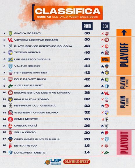 📈 A una giornata dalla fine della regular season, ecco la classifica aggiornata di #SerieA2OldWildWest