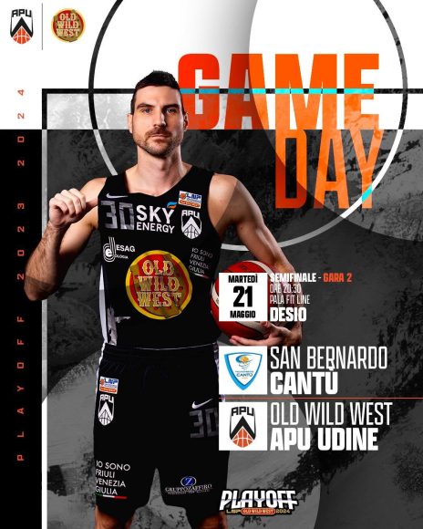 Si giocano stasera, martedì 21 maggio, con inizio alle ore 20.30 le gare2 delle semifinali play-off del tabellone Oro di serie A2: Acqua San Benedetto Cantù – Old Wild West Apu Udine, con i brianzoli in vantaggio, arbitri Salustri, Nuara e Bartolini; Uniero Forlì – Pallacanestro Trieste 2002, con i giuliani avanti, arbitri Dionisi, Foti e Pellicani.