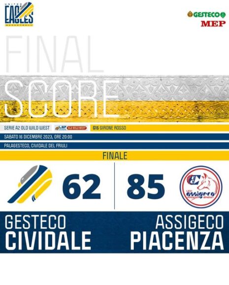 Gesteco Ueb Cividale-Assigeco Ucc Piacenza 62-85