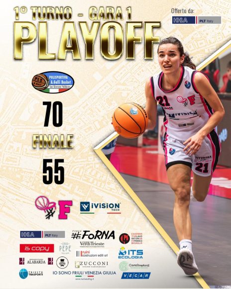 Pronostico rispettato nella prima gara dei quarti di finale dei play-off di serie A2 femminile. Primo quarto equilibrato e poi le padrone di casa hanno avuto l’inerzia dalla loro, sfruttando la maggiore aggressività. Quintetto base per la Futurosa iVision che parte con Sammartini in regia, Rosset e Mosetti esterne, Srot e Miccoli a giostrare sotto i tabelloni. Primi minuti con vantaggio rosanero, Srot e Mosetti tengono la squadra triestina avanti fino all’8-10 del 4’, poi è Mioni a prendere in mano le redini del match con due canestri consecutivi del sorpasso. Il primo set si archivia con le padrone di casa avanti 20-13 e inizio di secondo parziale molto negativo per le ospiti che incassano in meno di due minuti un parziale di 7-0 che porta il risultato sul 27-13, costringendo coach Mura a fermare la partita e a chiamare time-out. Minuto che scuote la squadra triestina che si riprende, limita i danni e rientra negli spogliatoi sotto 42-25. Il terzo periodo è quindi di sostanziale equilibrio, con Trieste che riesce a rosicchiare qualcosa alla sua avversaria; quindi, negli ultimi dieci minuti Valdarno controlla e alla fine mette le mani su gara1.