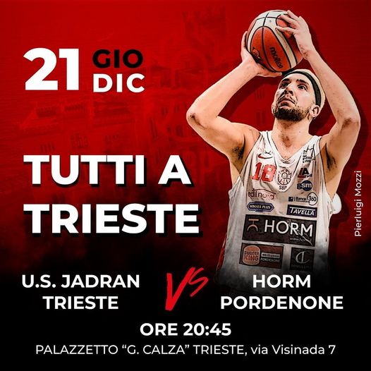 Turno infrasettimanale prenatalizio, valido per la terza giornata di ritorno, in serie B interregionale girone D della Conference Nord-Est con il botto per lo Jadran Gostol Trieste che al palaChiarbola batte per 70-59 (21-7, 40-23, 52-37) l’Horm Italia Sistema Pordenone.