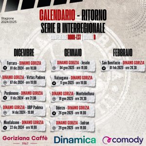 La matricola Dinamo Gorizia, che pubblica l’anticipazione sulla propria pagina Facebook, ce ne offre il destro e cogliamo la palla al balzo. La Fip Veneto ha pubblicato il calendario provvisorio della Division D della Conference Nord Est di serie B interregionale 2024 – 2025 e lo riprendiamo. Pubblichiamo integrali le prime due giornate, così avete contezza di quali sono tutti i campi di gara delle 12 squadre partecipanti al girone. Degli altri turni, di andata e ritorno, invece diamo solo le gare delle quattro formazioni Fvg, così sapete in particolare quando si giocheranno i derby regionali. Uno, Jadran Trieste – Sistema Pordenone, è subito al via; gli altri alla terza, quinta, settima e decima giornata, con questa ultima e la terza che saranno giocate infrasettimanalmente sia all’andata sia al ritorno. La quarta squadra Fvg è la Falconstar Monfalcone.