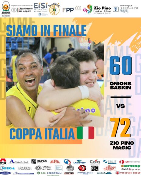 Zio Pino Baskin Udine ASD si trova presso Giuseppe Bondi Arena. 𝗭𝗜𝗢 𝗣𝗜𝗡𝗢 𝗠𝗔𝗚𝗜𝗖 𝗜𝗡 𝗙𝗜𝗡𝗔𝗟𝗘 𝗗𝗜 𝗖𝗢𝗣𝗣𝗔 𝗜𝗧𝗔𝗟𝗜𝗔! Grandissima vittoria nella semifinale di ieri contro gli Onions Baskin! Un successo che ci porta dritti alla finale di queste splendide finali di