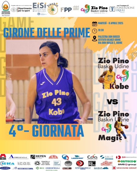 Eโ scattata martedรฌ 18 marzo scorso la seconda fase regionale del campionato Fvg di baskin. In settimana, martedรฌ 8 aprile, รจ stato giocato nel girone delle prime classificate della prima fase lโennesimo derby in famigliaย Zio Pino Udineย traย Magicย eย Kobeย che ha aperto il