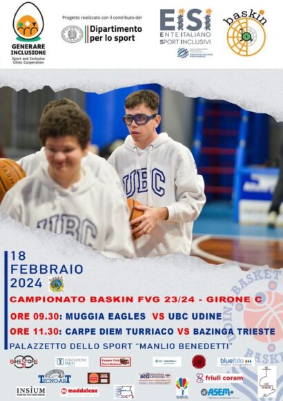 Il campionato regionale Fvg di baskin 2023-2024 chiude domani, domenica 25 febbraio, anche il girone C con la quinta e ultima giornata di ritorno. L’Interclub Muggia Eagles ha già vinto con una giornata di anticipo la corsa a tre per il