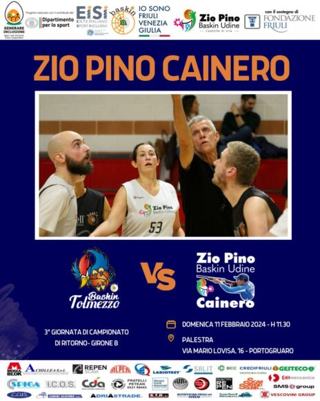 Il campionato Fvg di baskin 2023-2024 chiude domani, domenica 18 febbraio, anche il girone A, in cui la Zio Pino Kobe Udine è già alla seconda fase per le capolista, con la terza e ultima giornata di ritorno. Ciò dopo