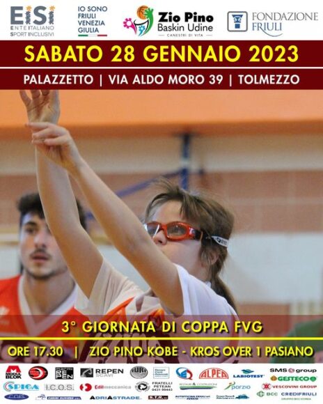 Quarta di andata di Coppa Fvg di baskin oggi sabato 28 gennaio a Tolmezzo, mentre la Coppa Italia sarà di nuovo in campo domani, domenica 29 gennaio. Sono le competizioni dell’attività del baskin della sezione territoriale Fvg dell’Ente italiano sport