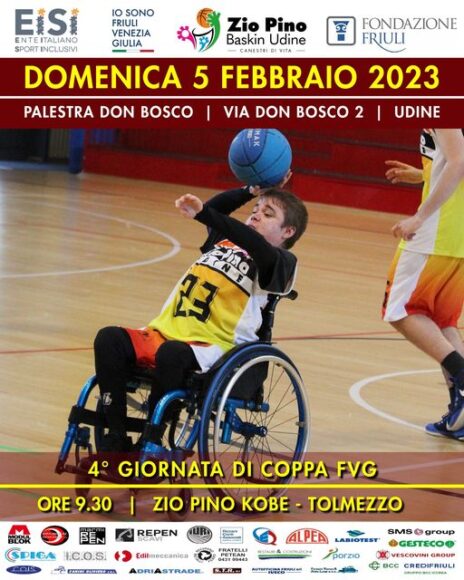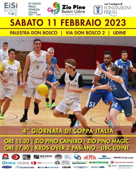 Oggi, domenica 5 febbraio, la mattina quinta di andata di Coppa Fvg di baskin al Bearzi di Udine e nel pomeriggio di Coppa Italia a Muggia. Sono le competizioni dell’attività del baskin della sezione territoriale Fvg dell’Ente italiano sport inclusivi