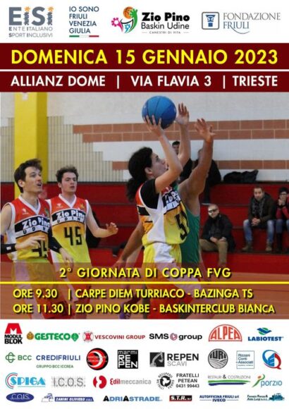 Torna, dopo le feste di fine e inizio anno, la Coppa Fvg di baskin. Oggi, domenica 15 gennaio, a Trieste al palaRubini Allianz Dome si disputa la terza giornata, mentre quella di Coppa Italia riprenderà domenica 22 gennaio. Sono le