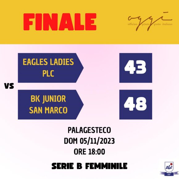 domenica 5 novembre, O.G.G.I. gelato Plc Cussignacco – Junior Bk San Marco 43-48 (18-14, 24-27, 34-36);