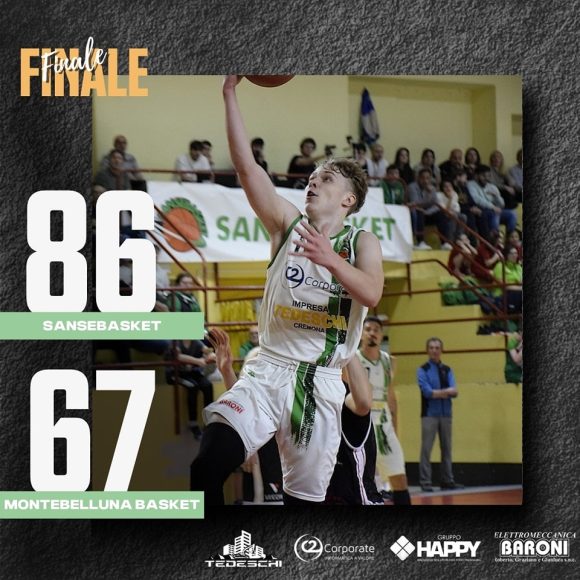 Impresa Tedeschi SANSEBASKET CR – MONTELVINI Montebelluna 86-67 (25-17, 41-29, 65-50) Arbitri VINCENZI (MN) – SABATINO (PC)