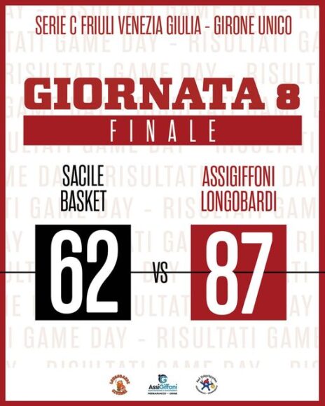 L’Arredamenti Martinel Sacile Basket dà via libera per 62-87 (16-17, 34-40, 52-70) all’AssiGiffoni Longobardi Cividale nel big match delle zone basse per uscire dalla quota zero in classifica. Sulla carta i padroni di casa avevano la fisicità per farsi valere, però la verve dei ragazzi di coach Spessotto ha avuto la meglio.