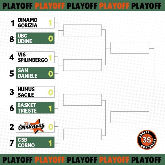 Alle 20.30 al palaZilio si gioca il big match fra la Calligaris Csb Corno di Rosazzo e la Intermek 3S Cordenons, arbitri Federico Meneguzzi e Marco Olivo. I ragazzi di Andrea Beretta, trascinati da un super Massimiliano Bosio e da un produttivo Federico Gallo produttivo, hanno fatto il colpaccio di giornata all’andata per 54-61 dopo due tempi supplementari e questa sera potrebbero chiudere la serie. Cordenons in tutto il campionato ha dimostrato di essere team da categoria superiore e siamo sicuri che sarà una gara giocata fino all’ultimo secondo.