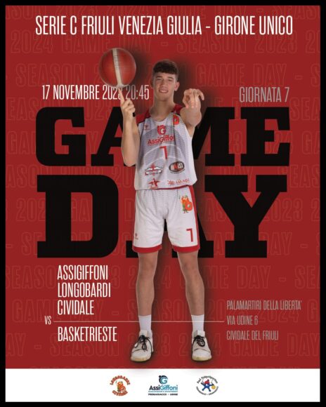 Settima giornata di andata in serie C unica Friuli Venezia Giulia. S’inizia questa sera, venerdì 17 novembre, alle ore 20.45, alla palestra Martiri della Libertà di Cividale con AssiGiffoni Longobardi contro BaskeTrieste, arbitri Giacomo Gorza e Riccardo Colombo. E’ una
