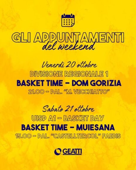 Dopo il primo successo stagionale in Divisione regionale 1, girone C, nota fino a pochi mesi fa come “Serie D”, del San Vito Trieste sull’Azzurra Trieste è ripreso il primo turno che si concluderà oggi, lunedì 16 ottobre, con il posticipo Pallacanestro Trieste 2004