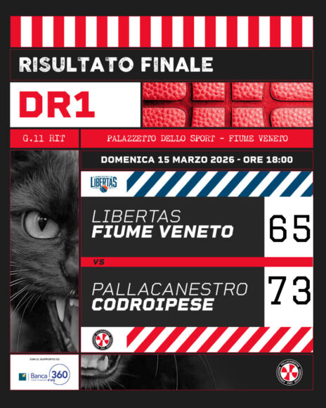 Celebrata domenica 15 marzo in quel di Fiume Veneto l’undicesima e ultima di ritorno del campionato regionale DR1, girone B. Che vedeva i locali opposti alla Cba Codroipo, ancora orfana di Nobile…, unicamente per la definizione conclusiva della griglia play-off.
