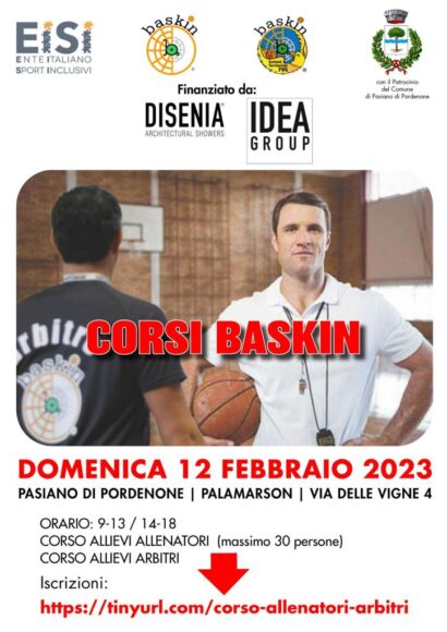 La sezione territoriale Baskin Fvg, aderente all’Ente italiano sport inclusivi (Eisi), indice un corso, a cui invita a partecipare, per diventare allievo allenatore o allievo arbitro di basket inclusivo. Si potranno imparare gratuitamente le basi per diventare allenatore o arbitro di baskin ed entrare a fare parte del gruppo targato Fvg Baskin.