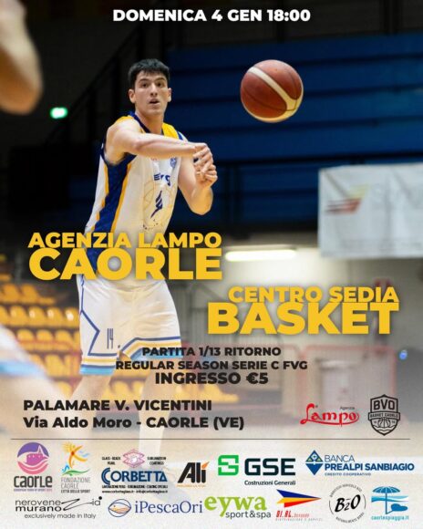 AGENZIA LAMPO BVO CAORLE – CALLIGARIS CSB CORNO DI ROSAZZO 04/01/26 ore 18 PALASPORT ‘PALAMARE’ – VIALE A. MORO CAORLE (VE)
